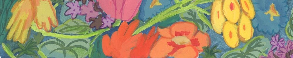 is a monthly newsletter of friendly writing on living a creative life. Here, we celebrate the joy and magic of making things! And by reveling in the expansive definition of making, we acknowledge that we make things everyday. More concretely, I write about the process for all the kinds of things I make (books, clothes, illustrations, quilts, paintings, ceramics, baked goods, flowers…).