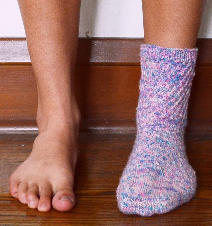 I started pandemic knitting in 2020, which I’m sure is a common story. Some of my friends were doing it, and I decided to give it a try. For some reason, I was drawn in by knitting socks, so that’s where I started.