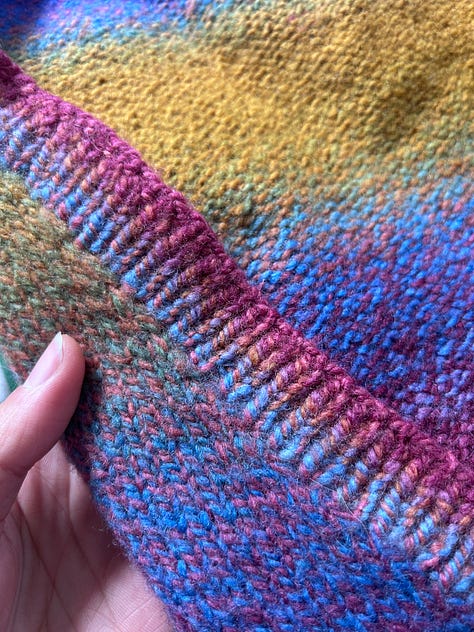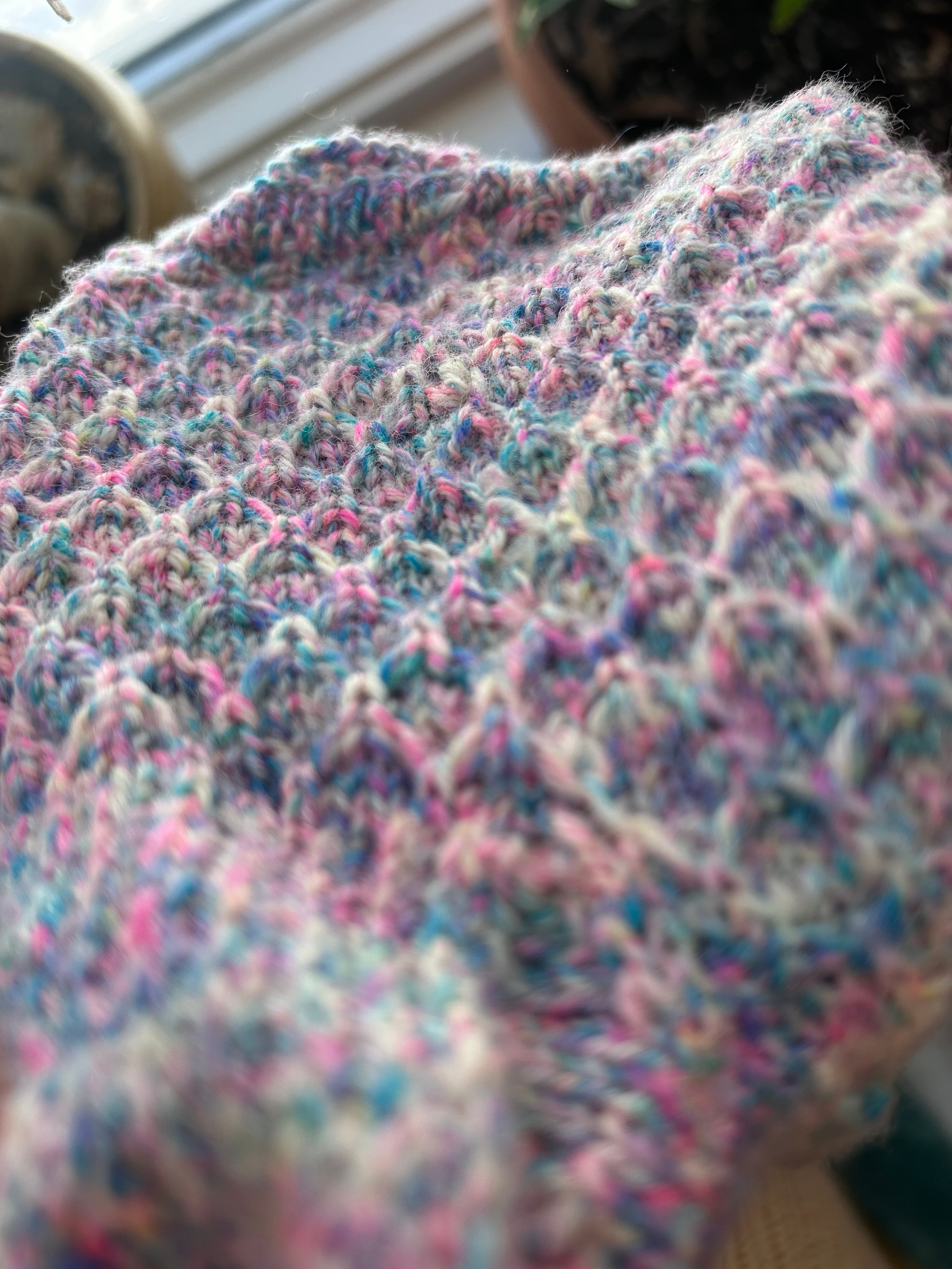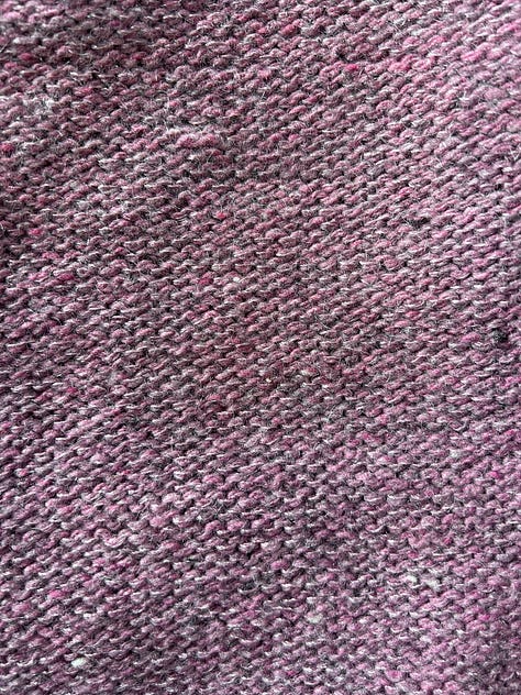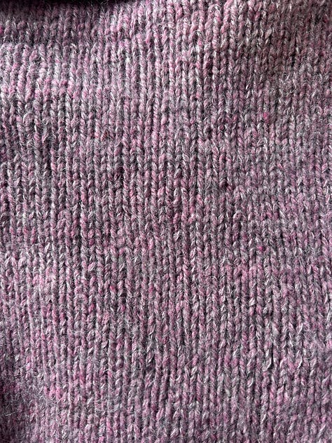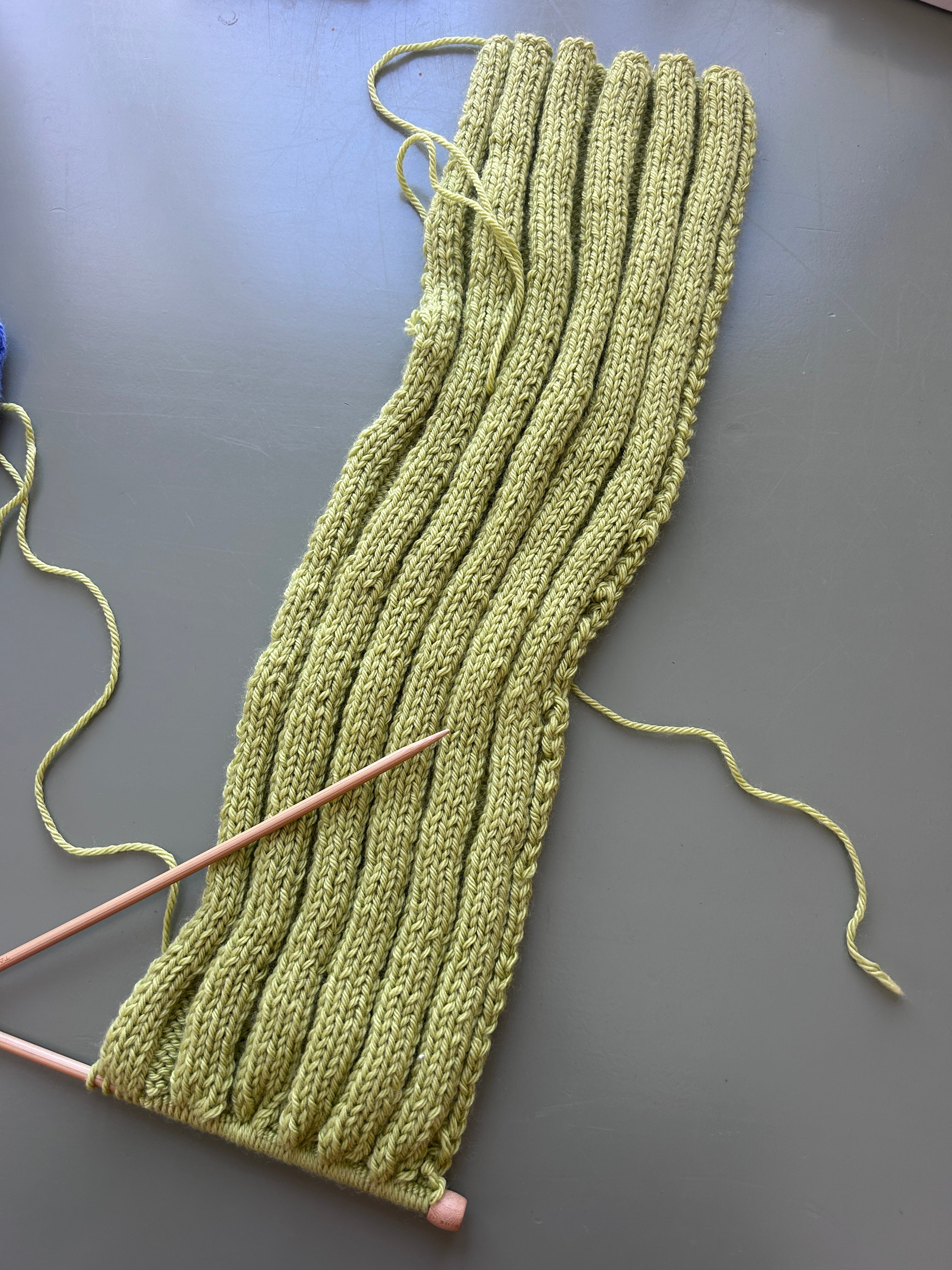 I have a long-standing scarf WIP because I find scarves very boring to knit, and now, after so long, I’m not sure that I like the look of the wide ribbing. But, I do like the yarn a bunch, so one day I’ll finish it or unravel it. What do you think? It’s 5 x 5 ribbing.