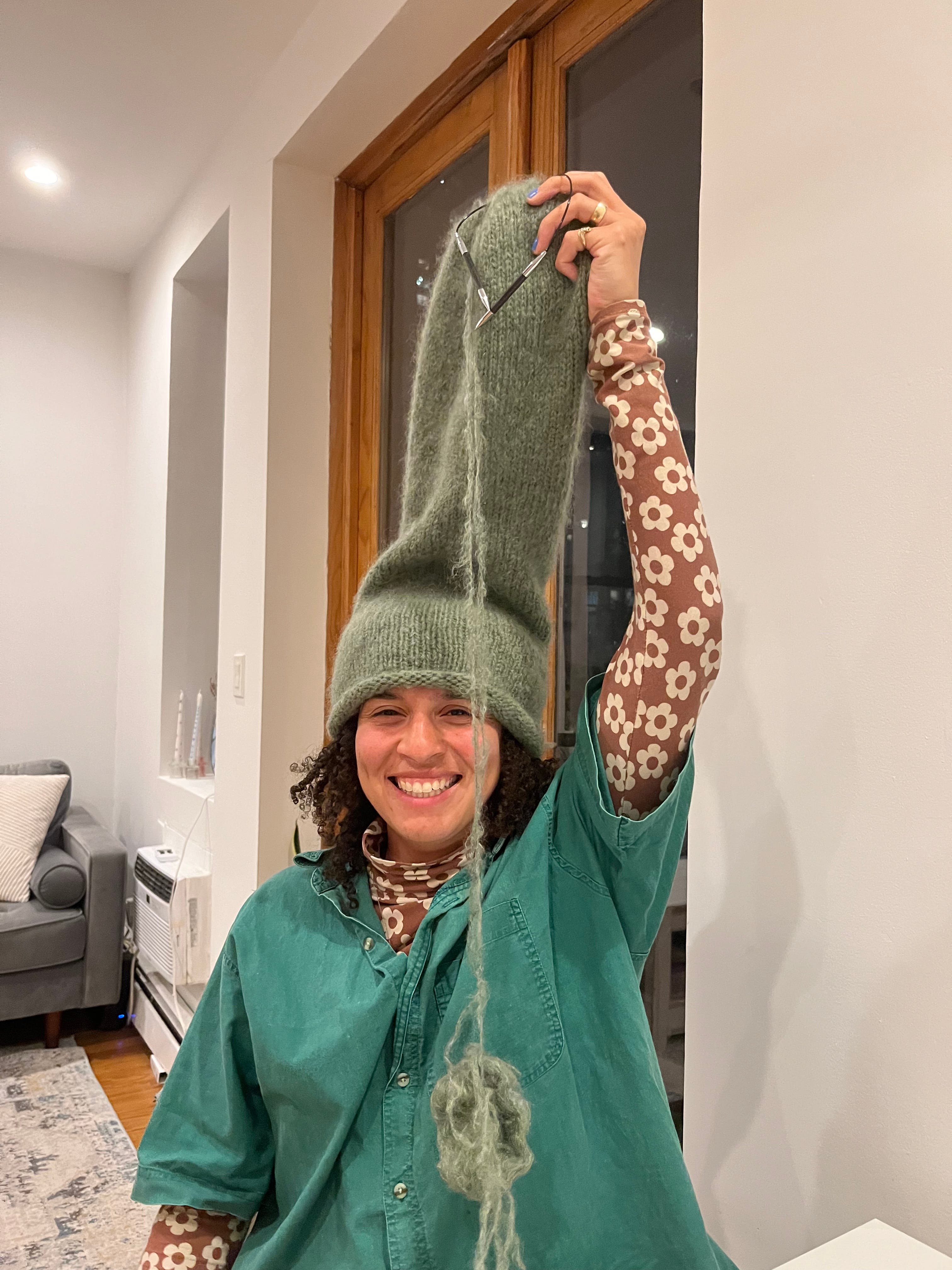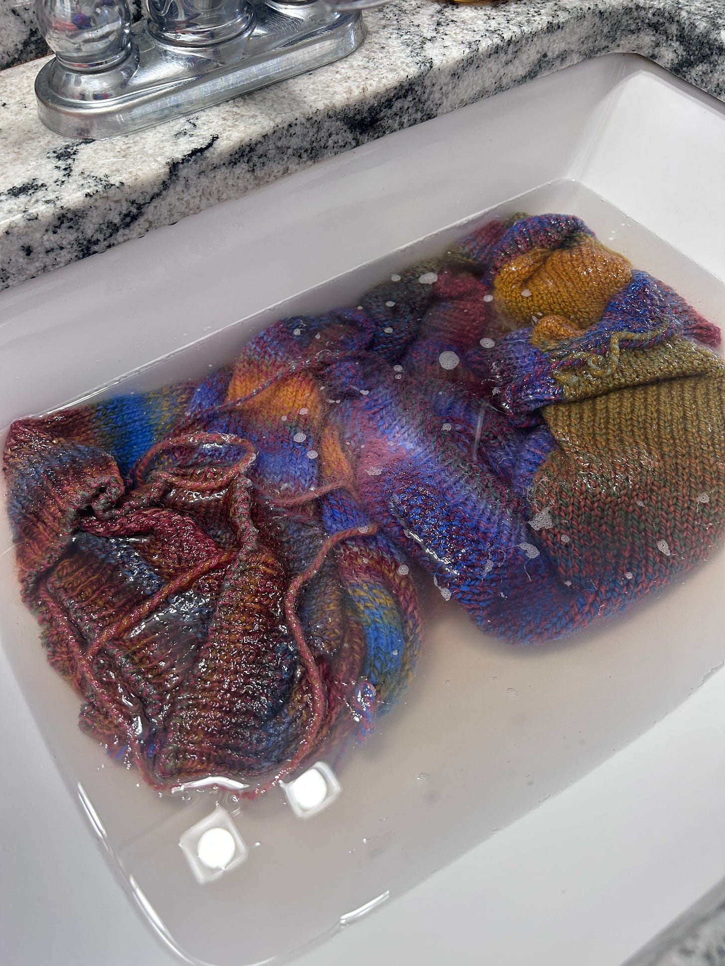 Remember when I mentioned that wool knits should be hand-washed and never put in the dryer? This is super important! If you put wool knits in the dryer, they will felt—aka revert to a state more like how they looked on the sheep! All the individual strands will combine together.