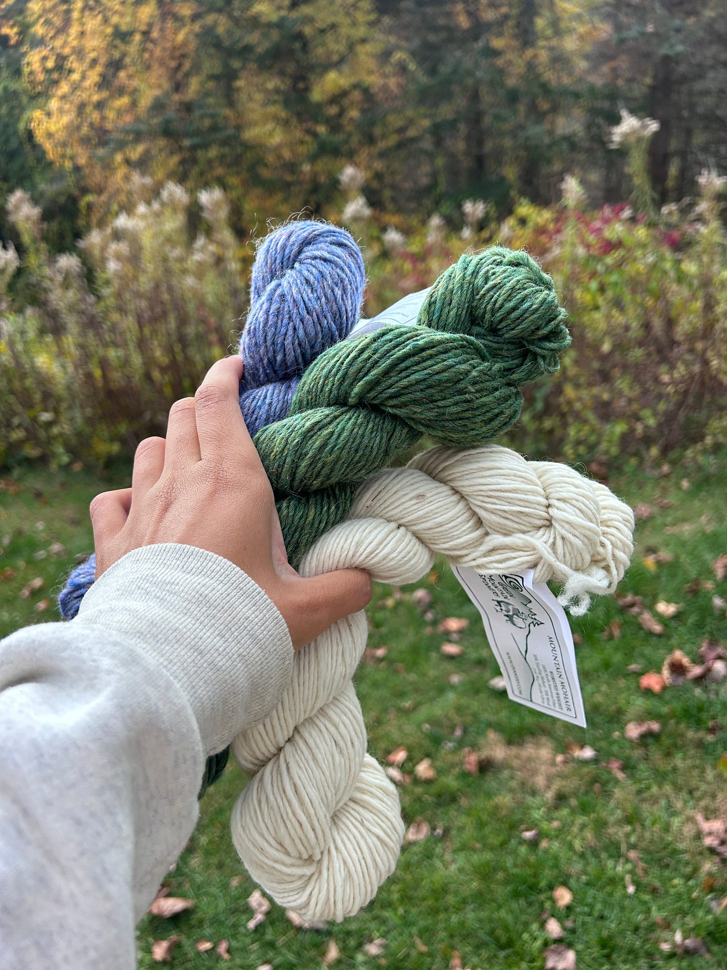 If you’re looking in a big box craft store like Michaels (RIP Jo-Anns), you’ll likely be seeing lots of acrylic yarn. Acrylic yarn is very soft and the least expensive option that you’ll find, but it’s synthetic, made with plastic, so it’s not great for the environment. It’s also more likely to pill and deteriorate over time and with wear. If you like acrylic yarn, purchasing it secondhand is a great compromise. I am not here to tell you not to use acrylic yarn, but I do think natural fibers are amazing for a lot of reasons!