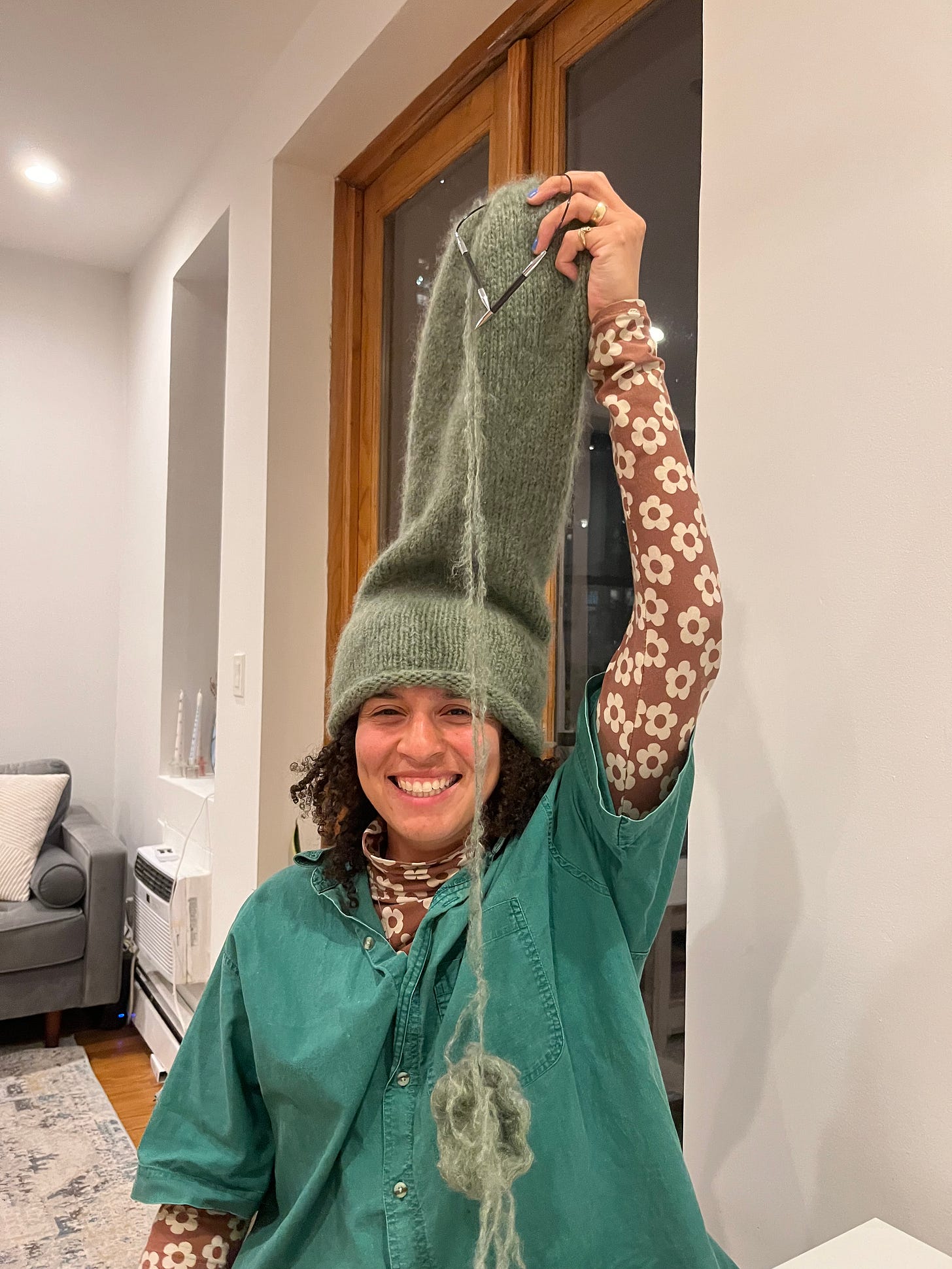 Then, after attending Rhinebeck Sheep & Wool for this first time in 2024, I knit this Cloud Sweater in yarn I purchased there! This is my first full sweater, and my very favorite. I could wear it any and every day. The color is perfect. The pattern is perfect. I definitely think I’ll knit another one! I knit this in 4 months, which feels fast.