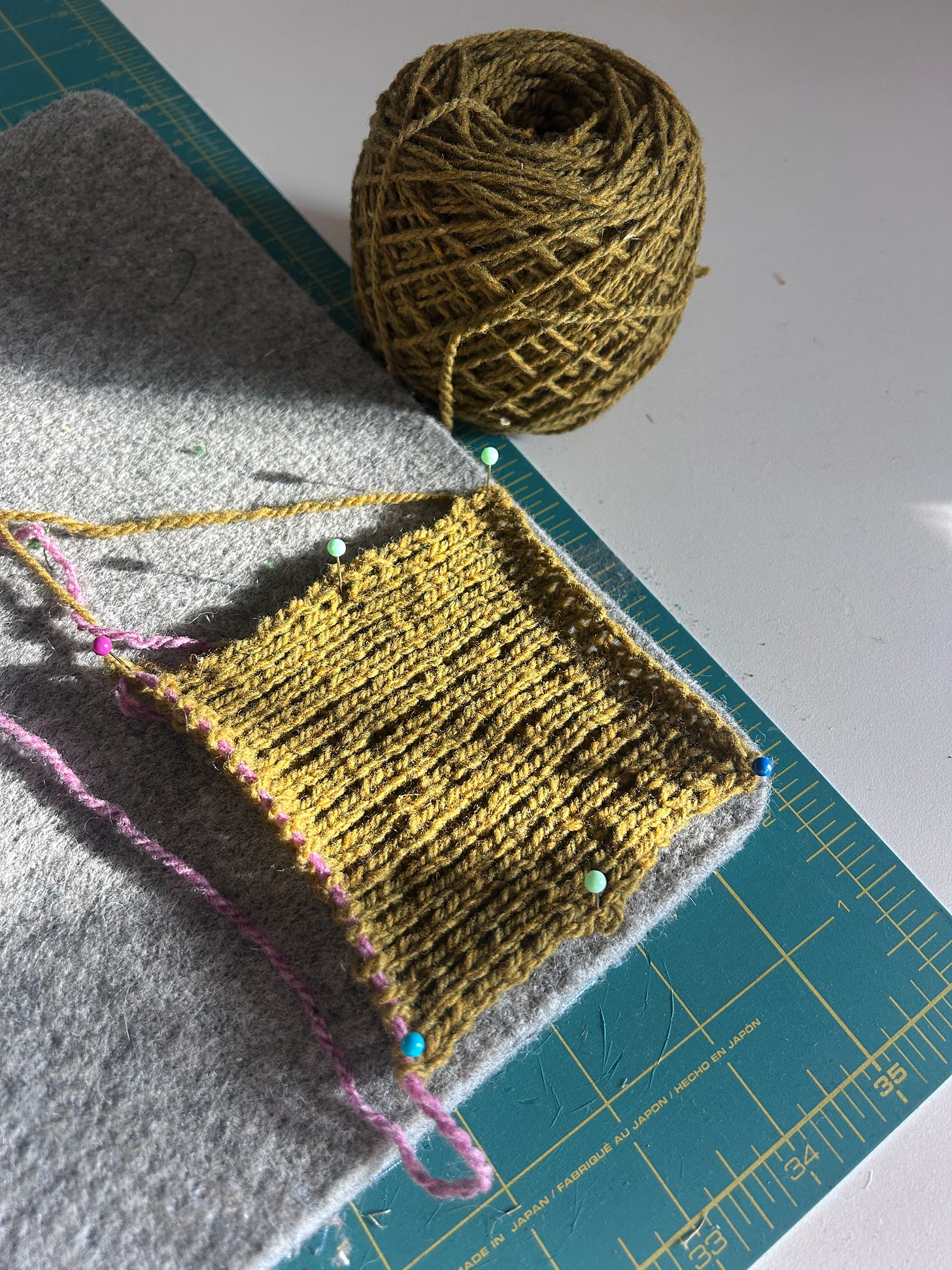 *I never block my swatches! I’m too impatient and don’t want to waste any yarn. So, if my swatch looks correct off the needles, I go for it!
