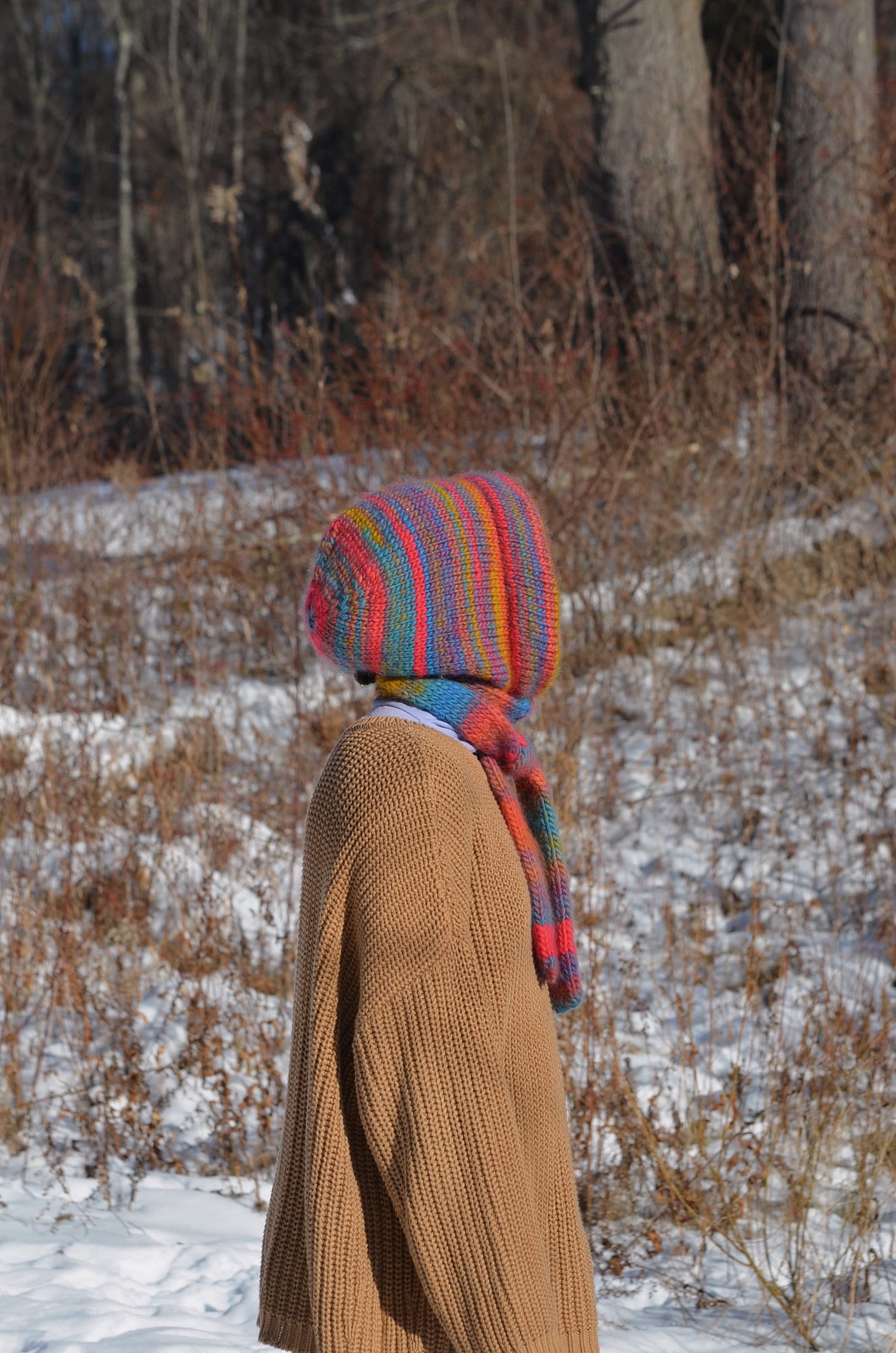 I also recently finished a Fuzzy the Hoody Bonnet. I love this thing, and it’s perfect if you’re not a beanie gal. The look of the double knit ties also makes it stand out from other bonnet patterns IMO. Knit after seeing a sample at my local craft store (with yarn from there too!).