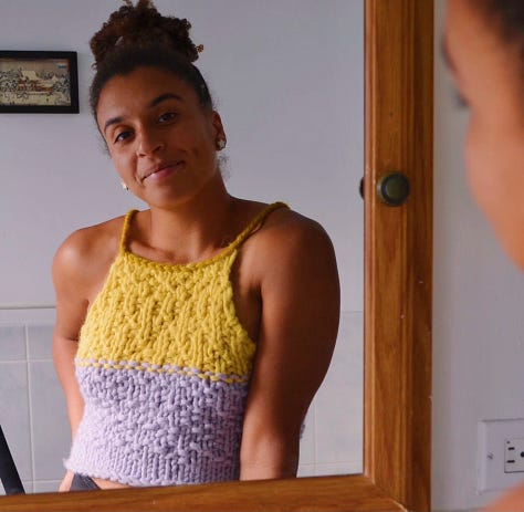 Crop it Like it’s Hot Top - Beginning to learn the limitations of knit items for summer (aka it’s too hot to wear them); not the best fit with this chunky yarn!