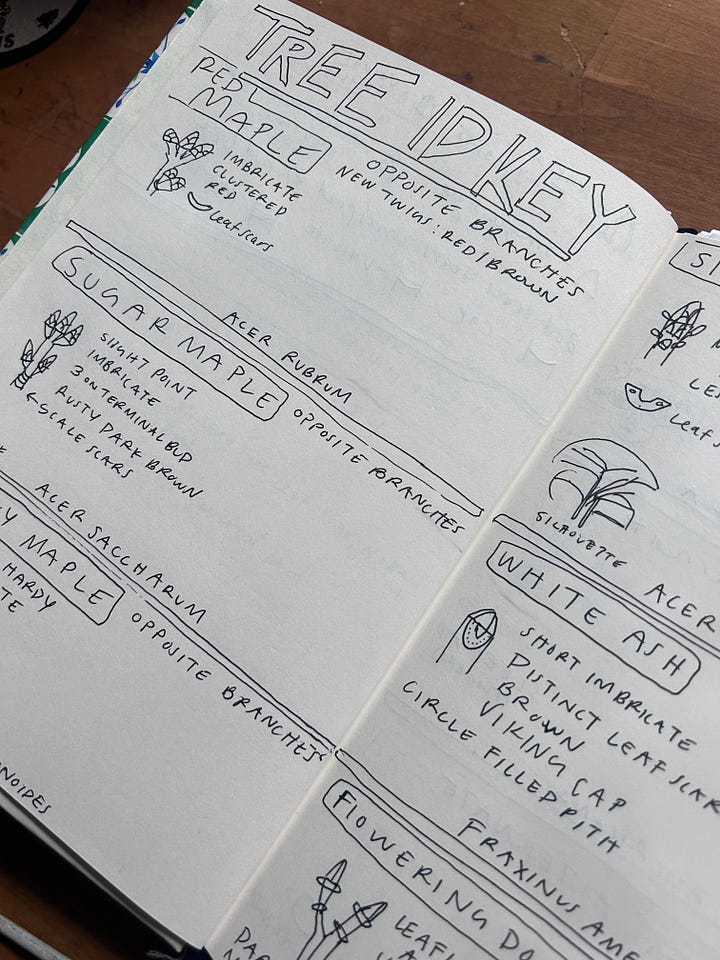 I got to catch a little long weekend warm weather break in March. It’s the best kind of shock to be suddenly surrounded by green growth and rampant flowers! Meanwhile, I’m continuing my Tree ID studies by crafting a little key/guide in one of my notebooks. The bottom right mock-up is a sneak-peek of a little home project Emilio and I are collab-ing on together. More on that in the next month or two!