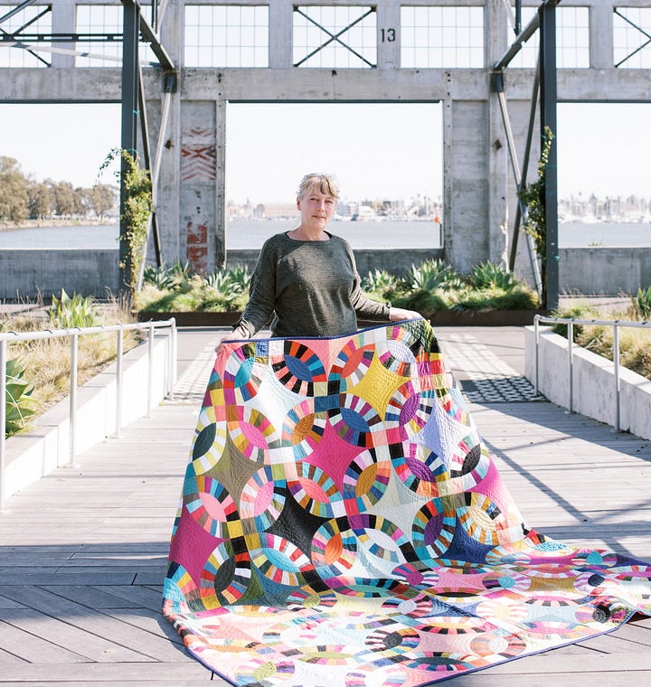 With the upcoming move, I’ve continued to spend a lot of time enthralled with textiles for the home. I’m a big fan of Tara Faughnan’s quilts, in many ways, but largely because of her commitment to solids (un-patterened fabrics). I find my own quilting inclinations heading that way, so I am always feasting on her palettes and combinations. Her works feels traditional and contemporary at the same time.