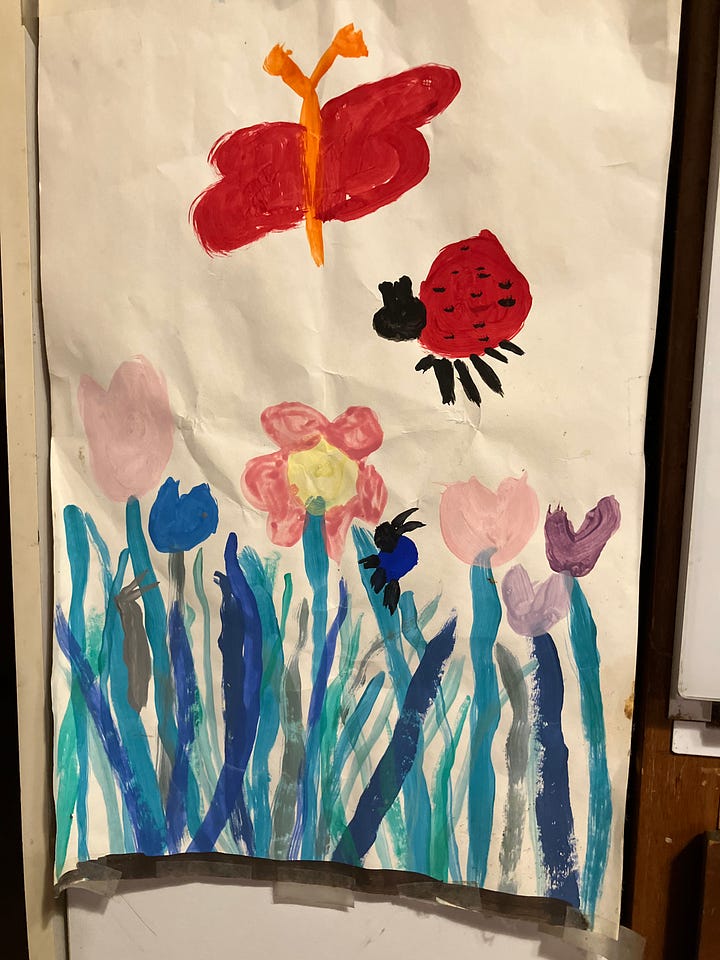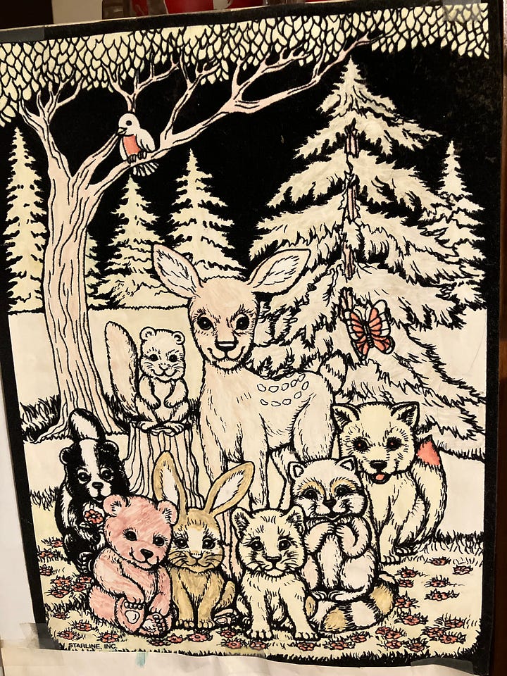 I loved fuzzy art—remember that? Coloring pages with fuzzy felt lines. I colored dozens and dozens of posters. One, completely sun-bleached of color, still hangs in my grandma’s kitchen.