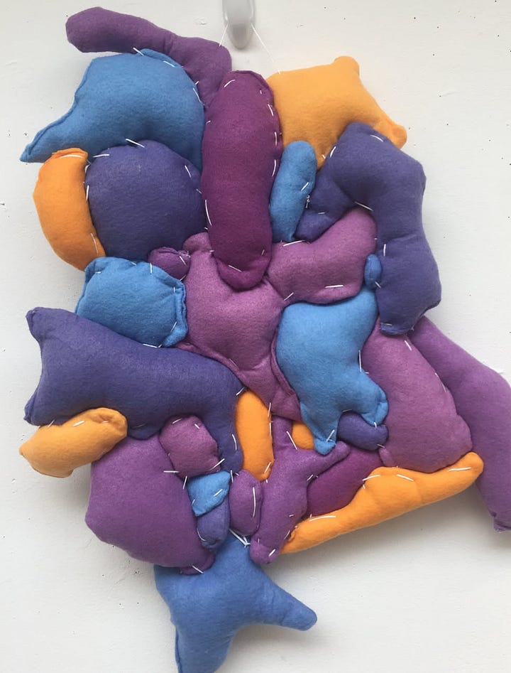 I’ve written about this moment before; it’s what I think of as the turning point in my art practice. In the spring of 2022, I started to sew. And, letting myself add another craft to my retinue allowed myself to embrace all of the kinds of art I wanted to be making. Up to that point, I felt a lot of angst that I was trying to do too many things. I didn’t know how to be good at all the stuff I loved doing. In that moment, I realized I didn’t have to be good at any of it to be happy, really. I just needed to do it.