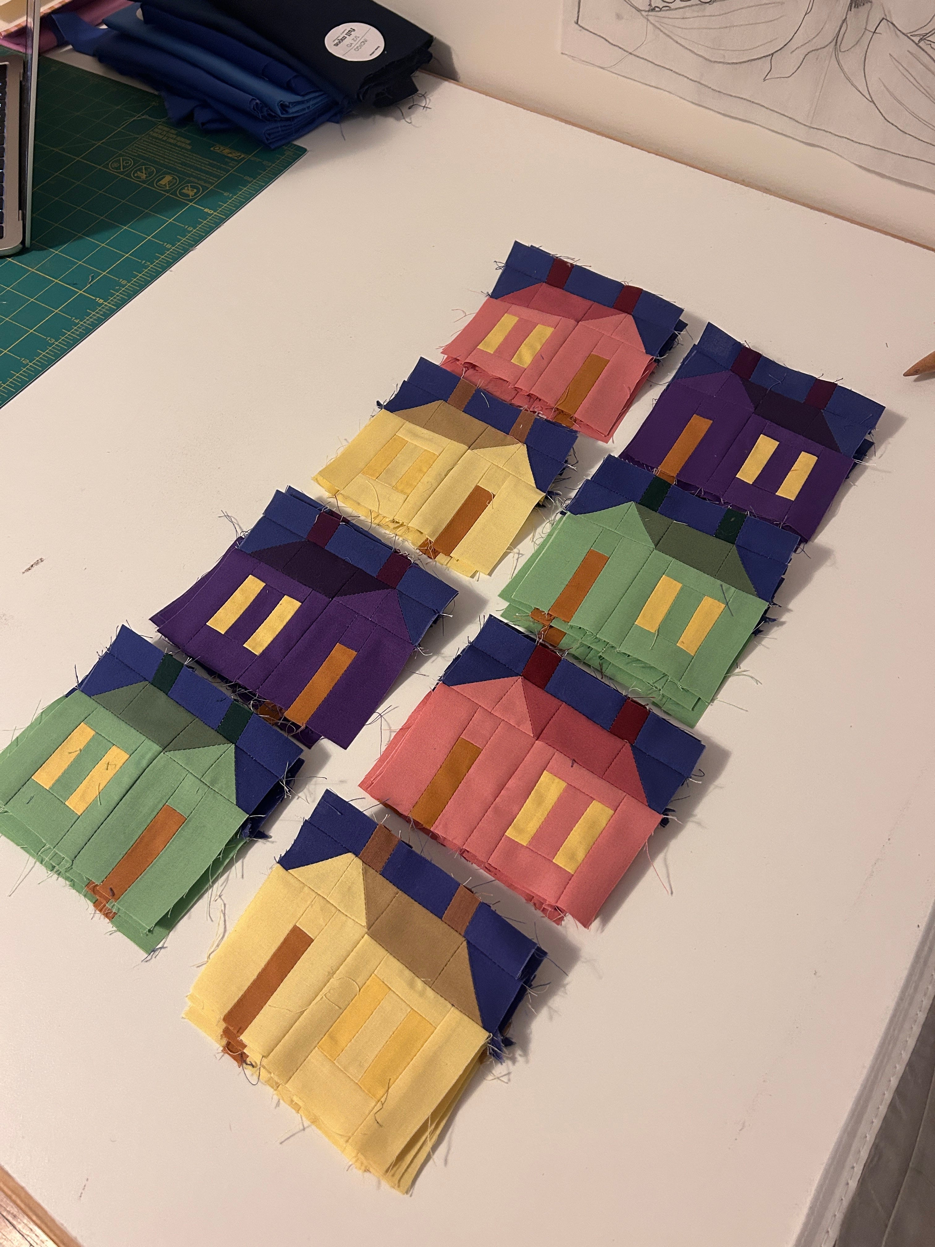 This actually is the next project I’ll be working on through November. I’m participating in a sew-a-long to make a quilt coat covered in little house blocks.