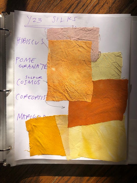 I learned so much in this little natural dye sprint. Natural dye is a cool part of my practice because it’s such a long and integrated part of my life. Growing plants, foraging, saving, pressing, extracting—it happens over an entire year and energizes you for starting the next cycle! I focused on silks for this update, and now have a lot of plans for starting to dye cottons and linens for garments and quilting in 2023.