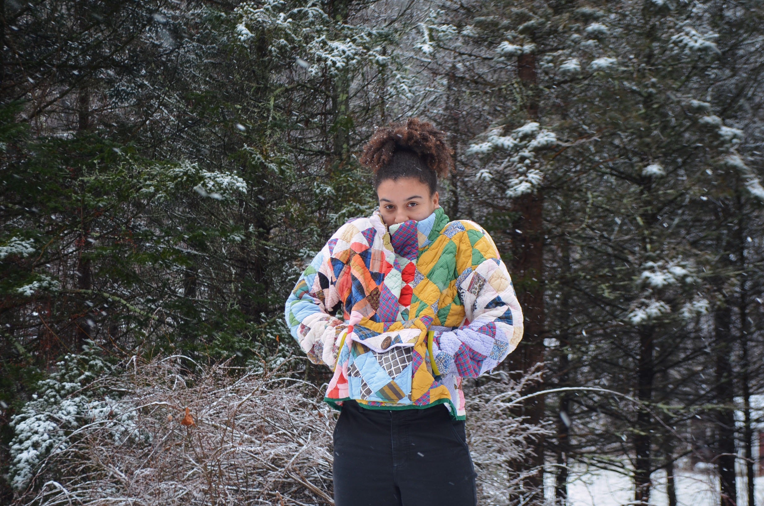 This month, you’ll float down a frozen river with me while we sew this pullover from an old quilt!