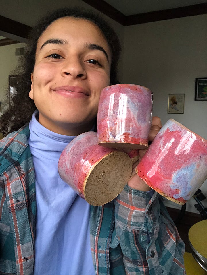 This month has been finishing up a few things, and then trying to get my melted brain to still show up work. But, finishing some stuff is pretty frickin’ exciting. I have a kiln load of pots (four mugs pictured) that are truly the most beautiful I’ve ever made! I can’t wait to put them in the shop! I also finished another version of the top pattern I designed, this time in a deadstock sparkly blue fabric from A Thrifty Notion. Hoping to learn a lot about pattern-making in 2023!