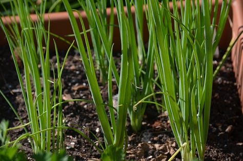 And the herbs and onions are generous, ready to offer a harvest anytime we need.