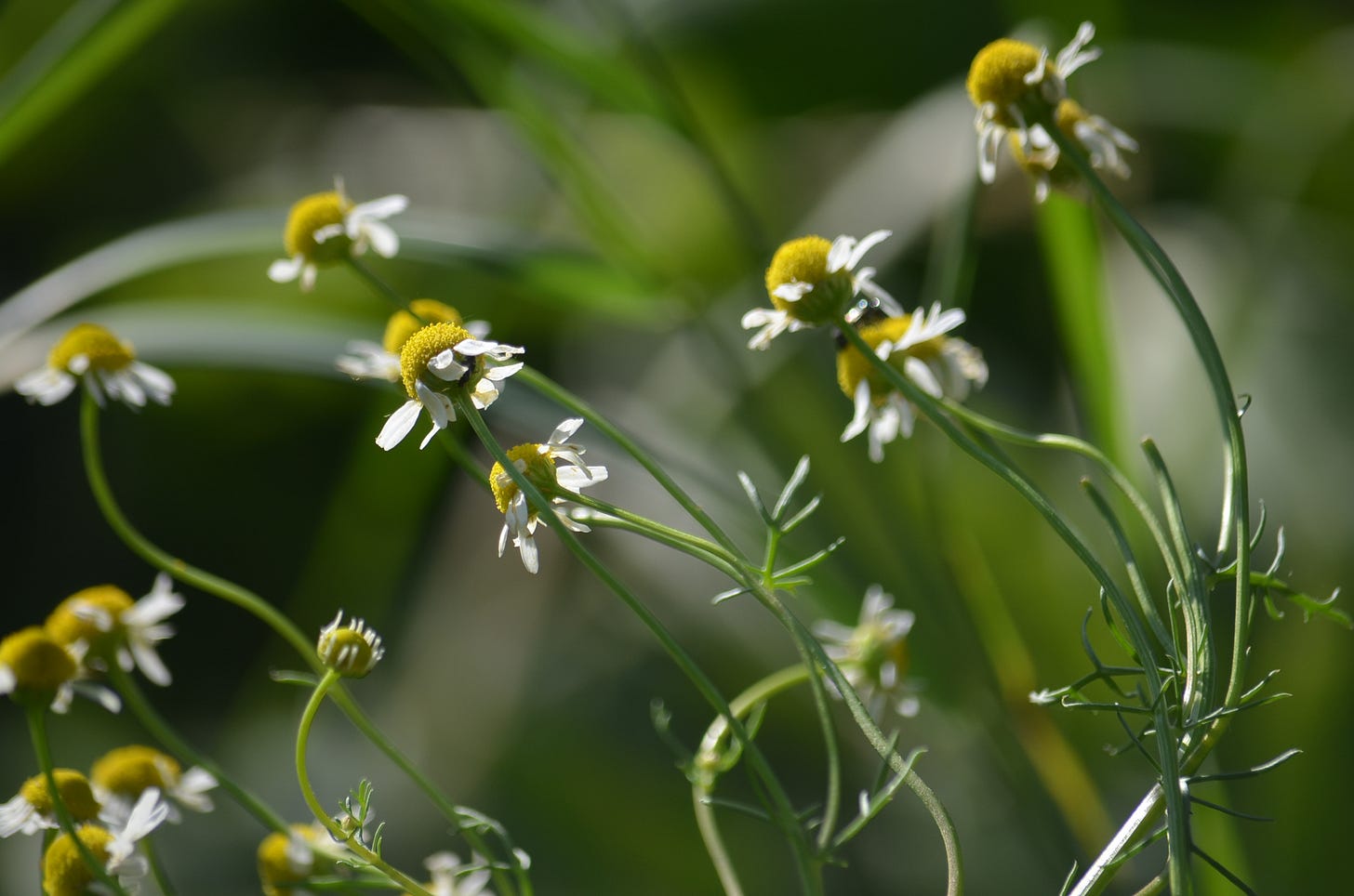 Our chamomile, which struggled in the rainy weather, still fights to flower.