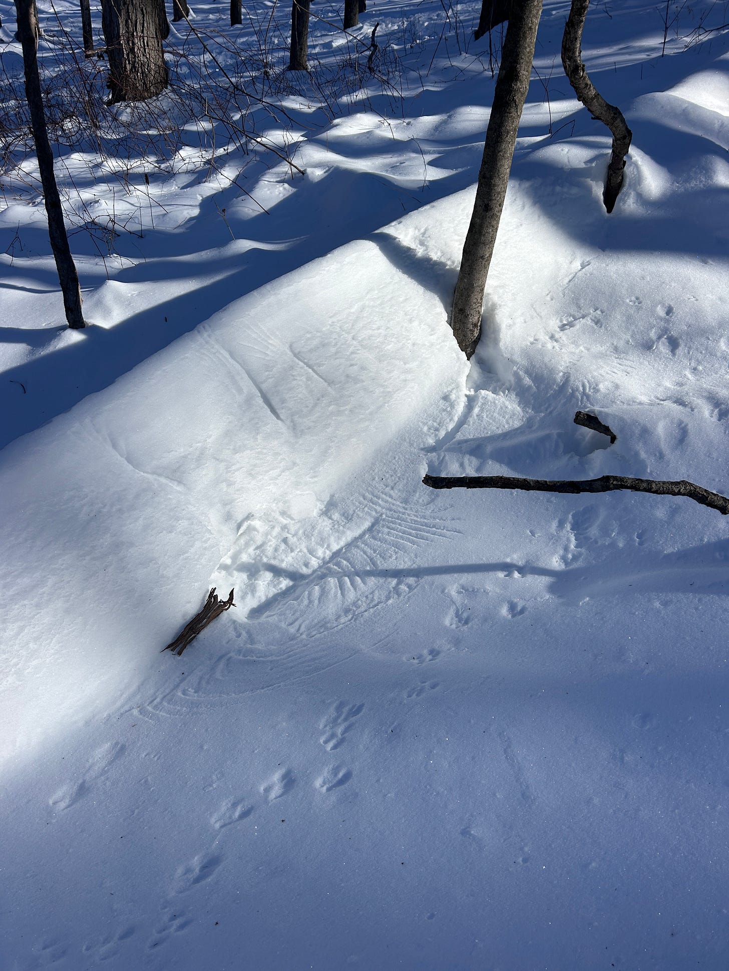 Something else I love about the winter: it leaves a record. Temporary, yes, but a remarkable story of all the life (and death) that happens out of our sight. While I can’t pretend to guess at what kind of bird swooped down after this rabbit, or if it was successful, I felt so lucky to wander past this scene.