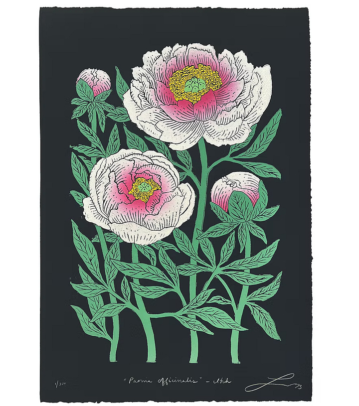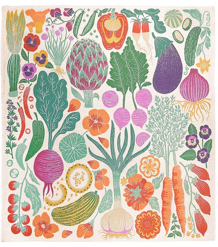 This month, I’m spotlighting the printmaker Lily Arnold. She makes these bold, gorgeous, botanical block prints. She’s based on the West Coast, so many of her common and native plants are different than the ones I see around here, and I’m still so captivated by them! I particularly love the garden towel on the left!