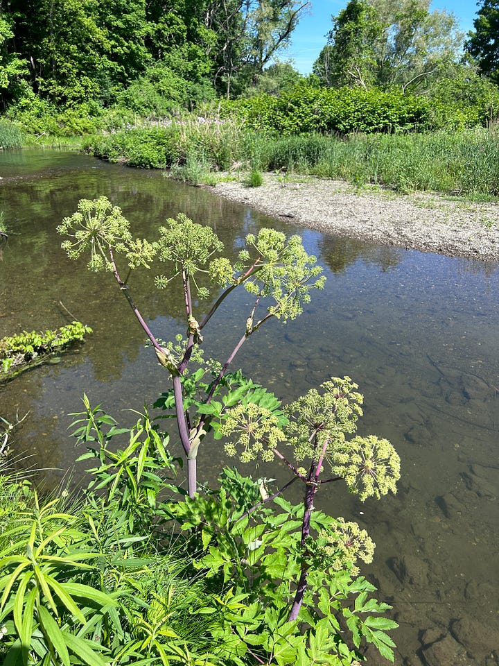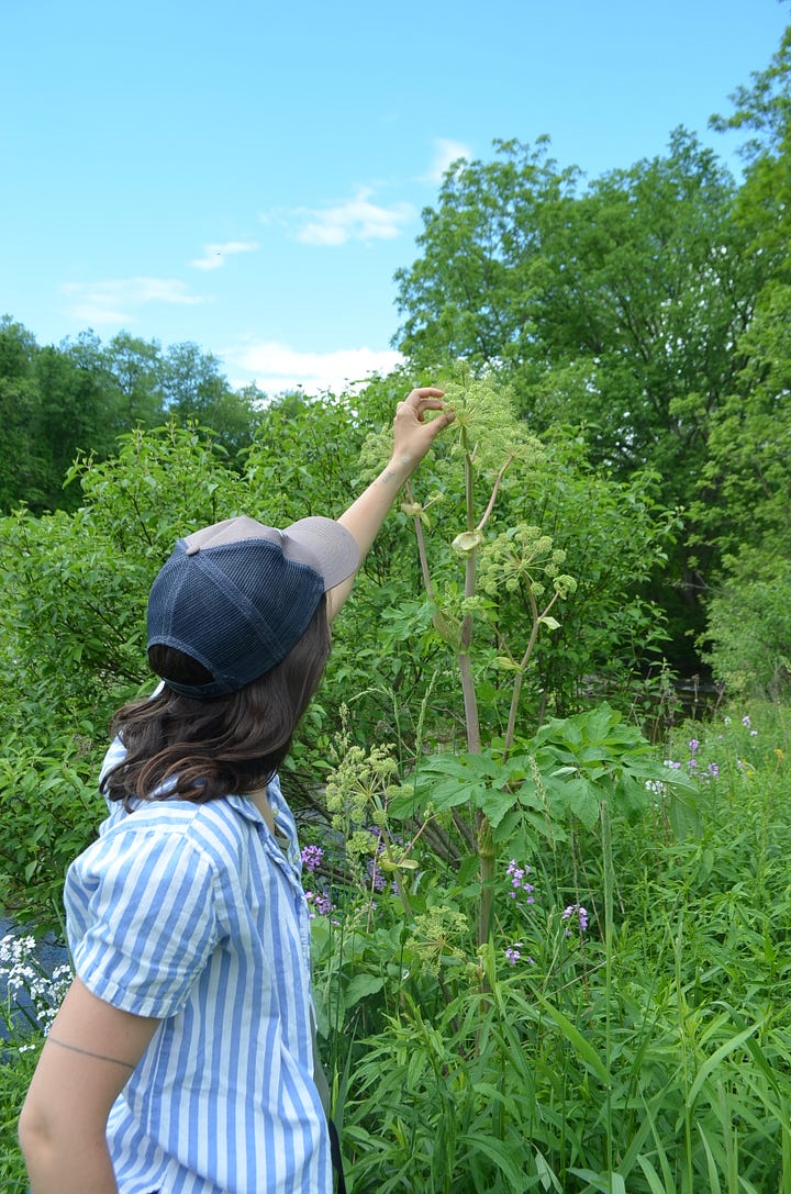 I bought a CSA box from my herbalist friend, Hannah of Foliage Botanics, and in it is an herbal medicine that feels so right right now: Angelica & Wild Rose Oxymel. Angelica is “a remedy for the portals of life…helping us across, helping us process.”