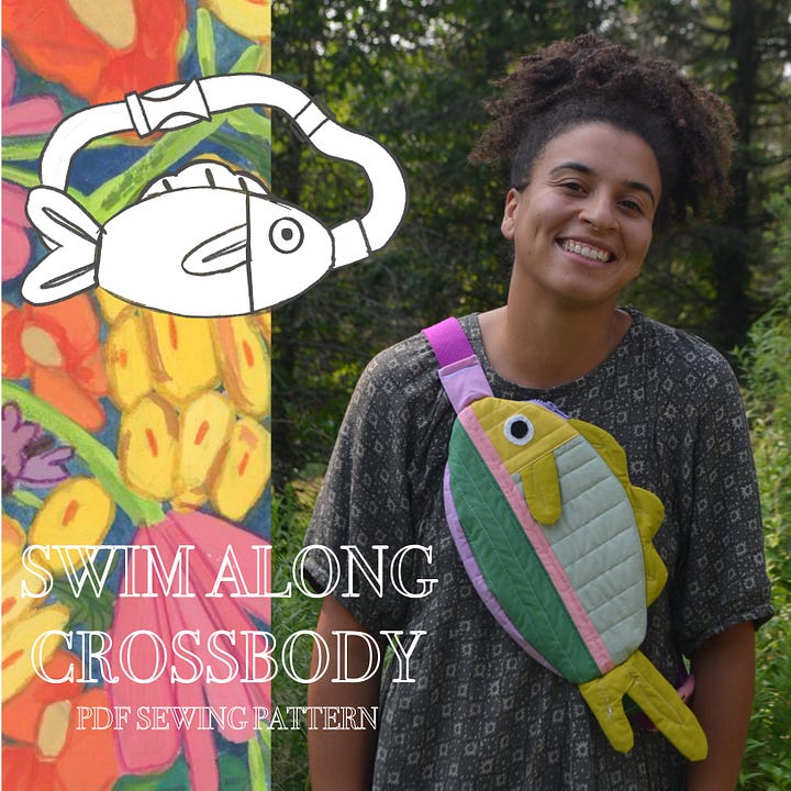 I treated August a little bit like a vacation after the release of the Swim Along Crossbody! Thank you all so much for the support! I sold all the pre-made bags & way surpassed my pattern sales goal! It’s so, so fun to see people making the bag. 🥹 I rewarded myself with chicken of the woods and goldenrod harvest, swimming, canoe camping, fires, and visiting with these two puppies that joined Emilio’s family.